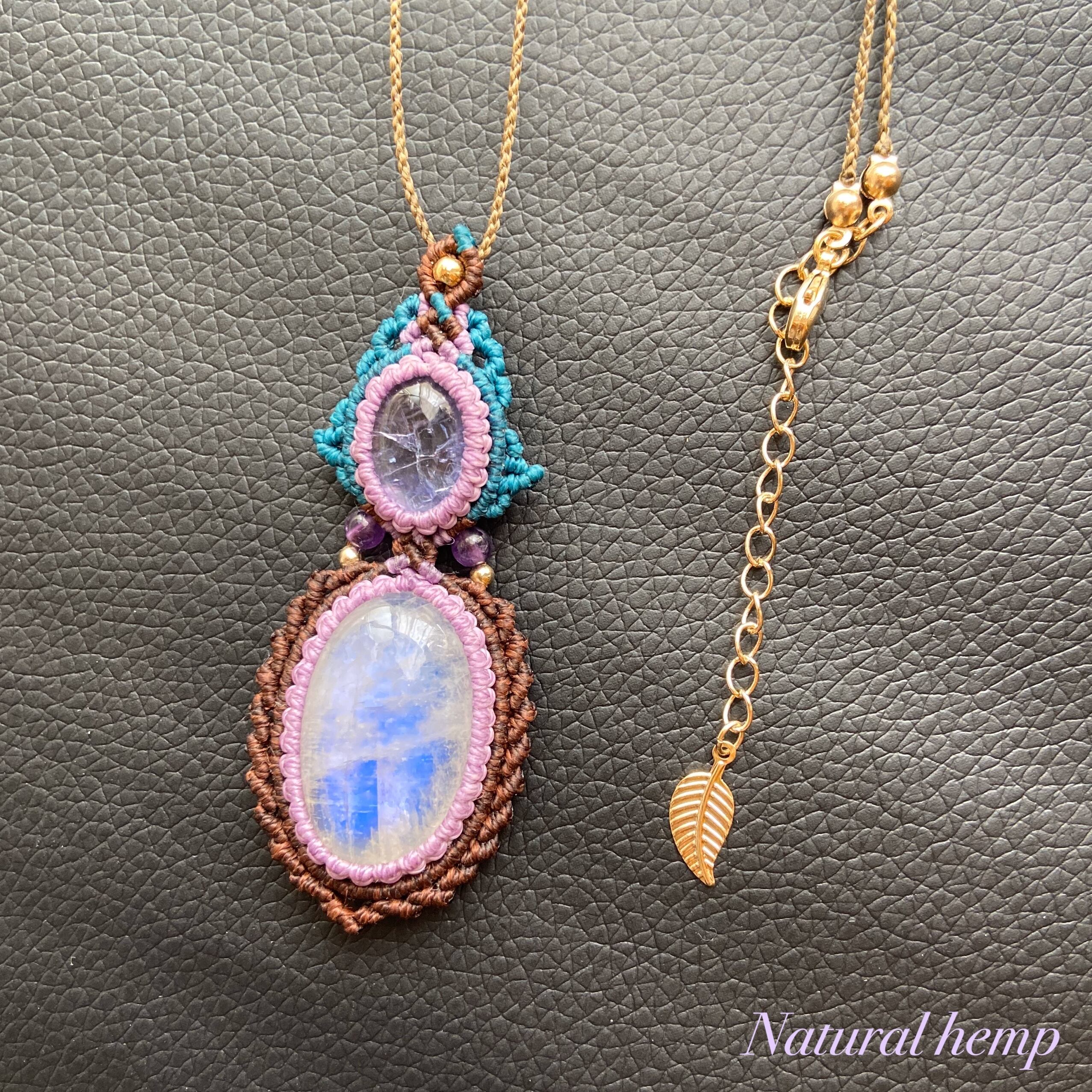 マクラメ編みは天然石を引き立たせるように心がけ、